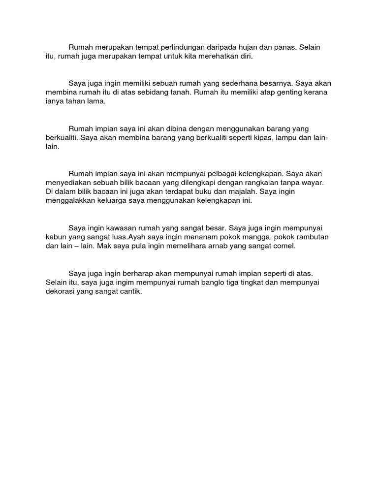 Contoh karangan rumah impian saya tahun 5. 40 Rumah Impian Dan Harganya. Saya akan membina barang yang berkualiti seperti kipas lampu dan lain- lain.