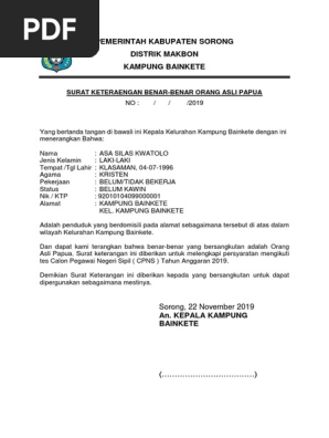 Surat Keterangan Benar Asli Papua Pdf